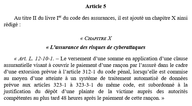 Une mesure du projet de loi d’orientation et de programmation du ministère de l’intérieur mérite toute l’attention des organismes d’assureurs confrontés au cyber-risque. Elle encadre l’assurance des rançons parfois réclamées dans le cadre des cyber-attaques.