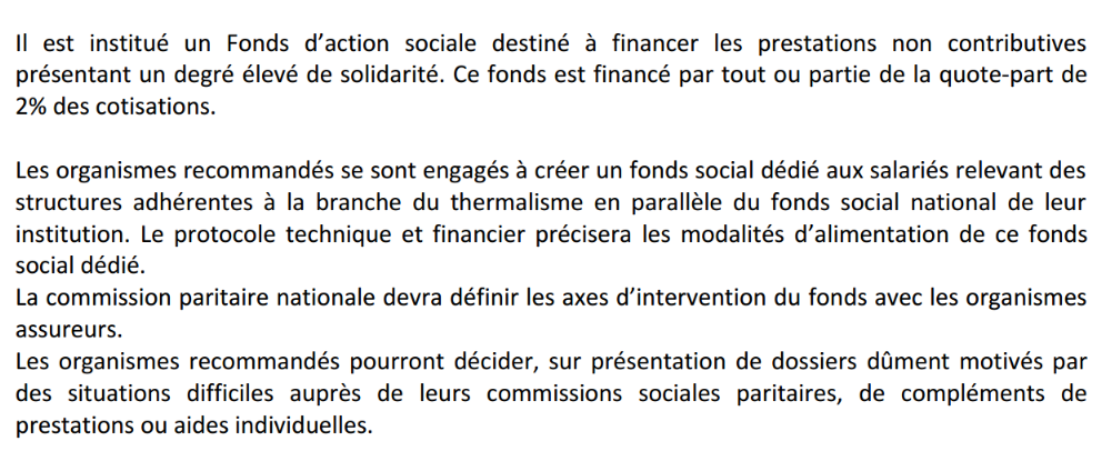 Dans le thermalisme (IDCC 2104), l’accord santé du 24 novembre 2015 a mis en place un fonds social.